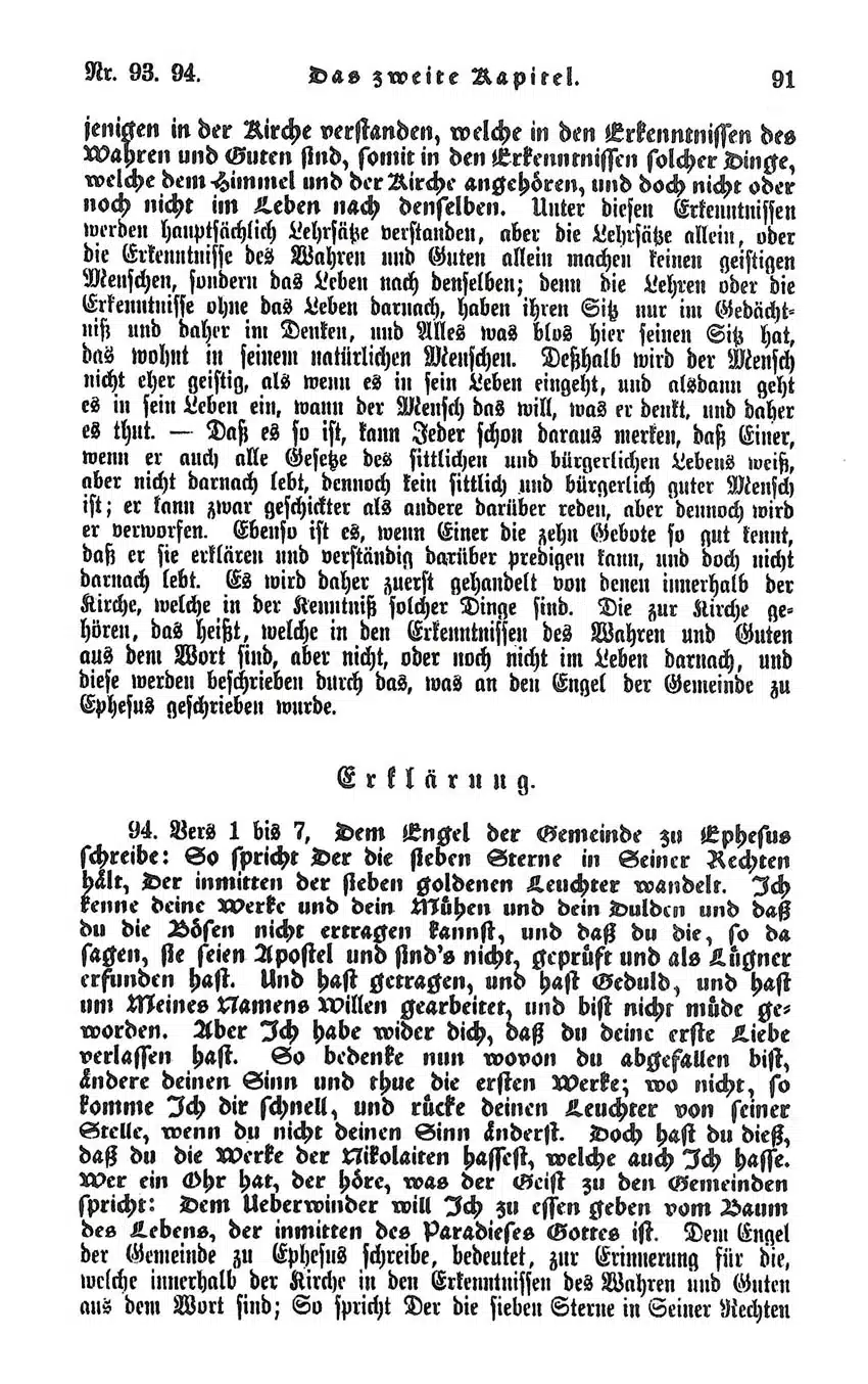 Swedenborg hat diese Auslegung der Offenbarung des Johannes nicht zum Abschluss gebracht. Mitten im 19. Kapitel der Offenbarung bricht er seine Auslegung ab. Die »Erklärte Offenbarung« stellt sich uns so gesehen als eine exegetische Sackgasse dar. Wer Swedenborgs Auslegung des letzten Buches der Bibel lesen möchte, der greife zur »Enthüllten Offenbarung«. Der abgebrochene erste Versuch ist mehr etwas für Spezialisten. Von Wert ist das Werk auch deswegen, weil Swedenborg im Zuge seiner Auslegung der Johannesoffenbarung sehr viele Stellen aus anderen Teilen der Bibel heranzieht, so dass man hier Deutungen zu anderswo kaum behandelten Bibelstellen findet.